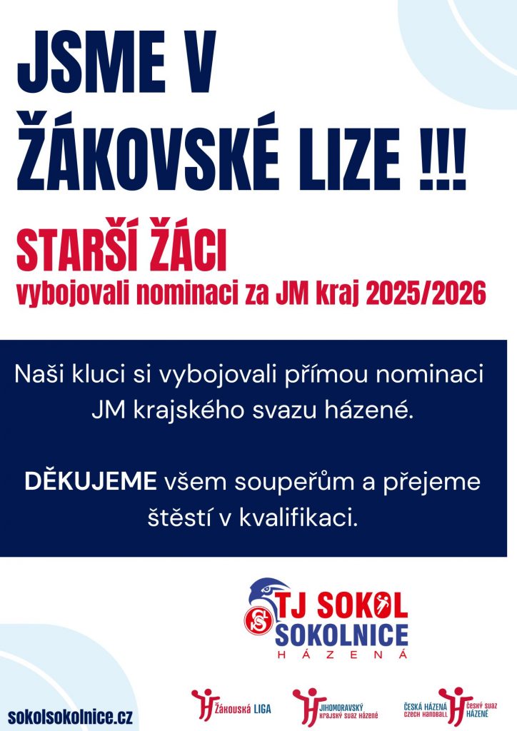Jsme obrovsky hrdí, že se nám i letos podařilo vybojovat nominaci Jihomoravský krajský svaz házené do Žákovské ligy starších žáků – prestižní soutěže, do které se z celého kraje nominuje napřímo jen jeden tým.