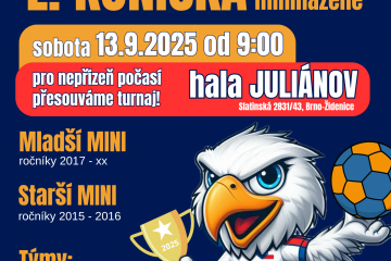 VII. MEMORIÁL L. KONÍČKA – aneb turnaj miniházené 2025 V sobotu 13. 9. 2025 jsme si připomněli památku Libora Koníčka tradičním turnajem miniházené. Počasí nám sice nepřálo, ale díky hale v Juliánově jsme si i tak užili krásný sportovní den plný napětí, radosti a dětských úsměvů. V kategorii přípravky Číst více…